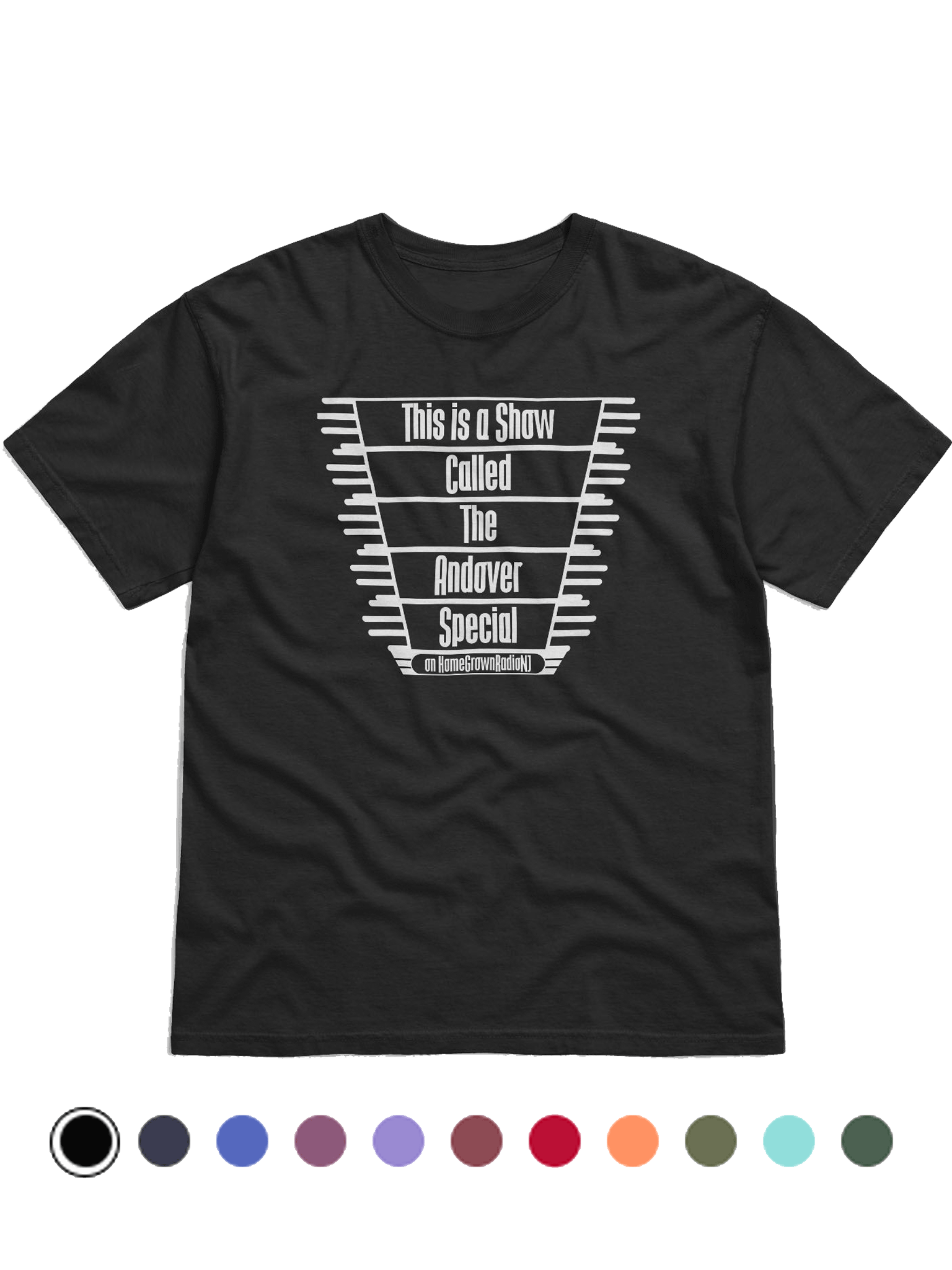Show your love of The Andover Special with this comfy, custom shirt, to have, hold, and wear, in honor of the ongoing miniseries of episodes featuring previously-unplayed artists.